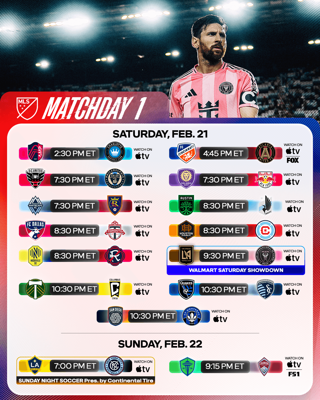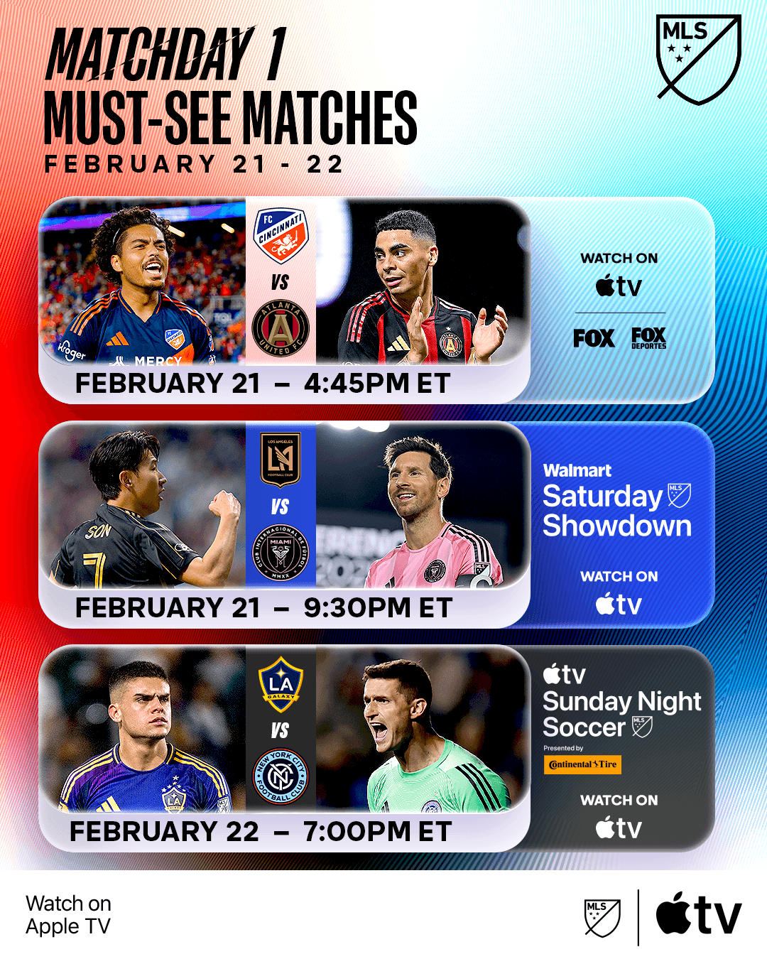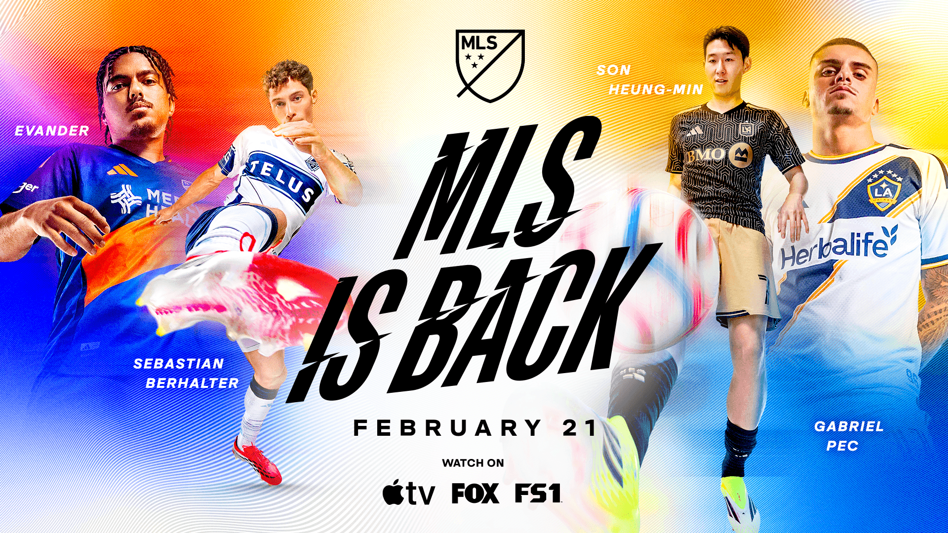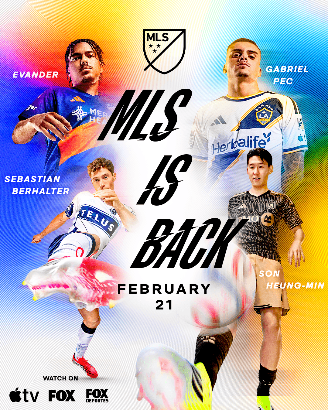 with all eyes on soccer in the united states in 2026, we branded this season's campaign with a radically refreshed, vibrant, energetic and modern tone to kick off the start of the 2026 mls season. the traditional red, white, and blue color palette was reimagined – breaking the conventional standard to burst with a new spectrum of hues, not only reflecting the energy of the campaign, but reflecting the wide array of players, fans, stars, cities, and clubs represented across the league